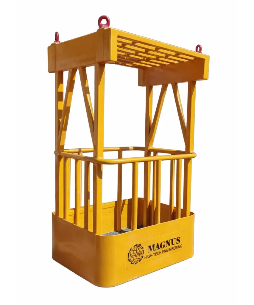 This Man Basket is designed to safely lift personnel for construction and maintenance work on high-tension lines or in areas where high voltage is a concern. It features insulated overhead protection for added safety in high-risk environments.